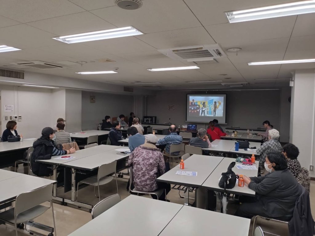 メインプログラムは、元衆議院議員で現・日本共産党大阪府委員会副委員長である清水ただしさんのビデオメッセージと講演動画の視聴です。元お笑い芸人という経歴を持つ清水さんは、政治を身近に引き寄せる天才です。講演動画は群馬県の前橋市でのものです。