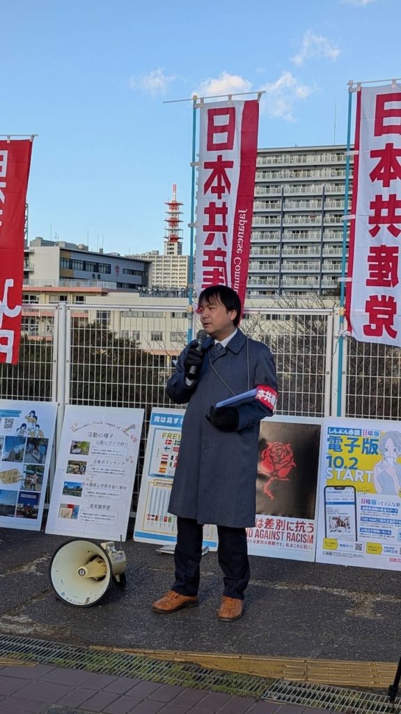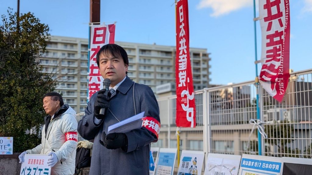 宣伝では、いま世界で起きている理不尽な事態に触れました。特に、アメリカ・トランプ政権によるベネズエラへの武力介入という暴挙です。自国の利益のために他国の主権を奪い、軍事力で現状を変えようとする「アメリカ第一主義」の暴力は、断じて許されません。
