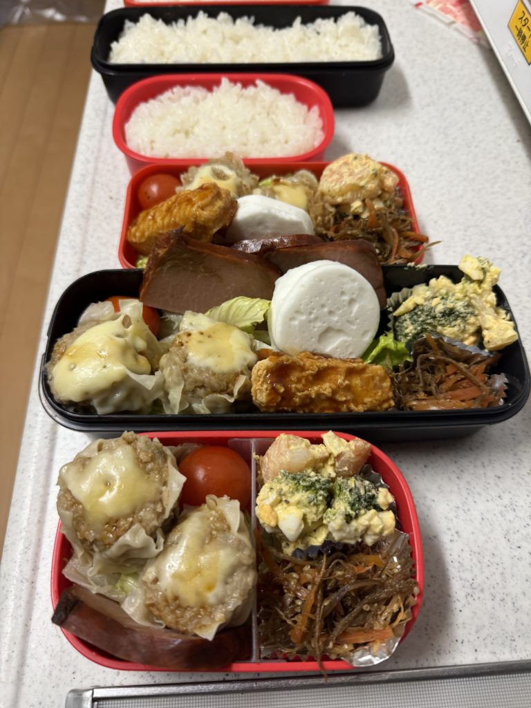 お弁当作りをスタートして、もうすぐ1年になります。 本日は、長男とパートナー、そして私の分の3人分を用意しました。