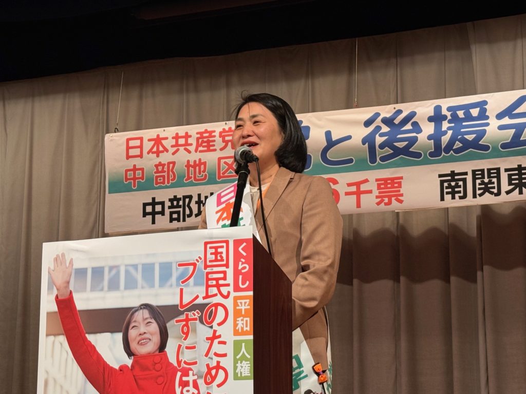 今度の総選挙は、国民の暮らしを壊し続ける自公維政権に審判を下す極めて重要な戦いです。私は決意表明の冒頭、「『比例を軸に』を貫いて、何としても、はたの君枝、さいとう和子両衆院南関東比例候補を押し上げます」と強く宣言しました。比例代表での日本共産党の躍進こそが、政治を動かす最大の力です。