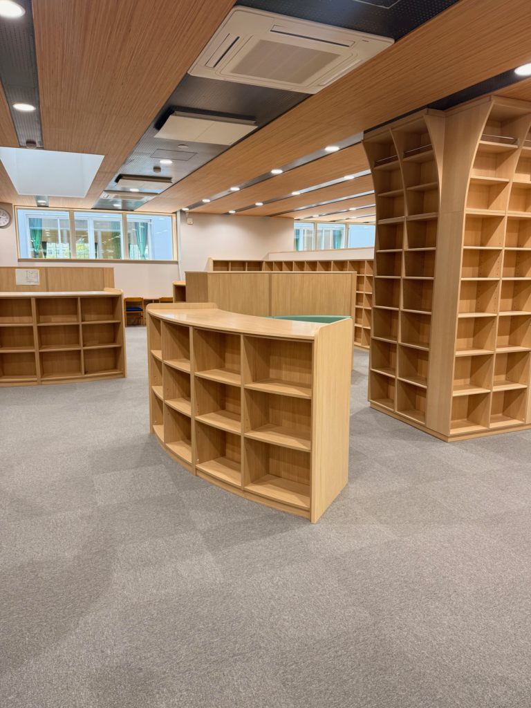幕張新都心若葉住宅地区の大規模な住宅開発に伴い、過大規模校となる打瀬小学校から分離新設されるのが幕張若葉小学校です。今回の視察では、建物の外観や、特徴的な内部構造を確認することができました。 本校の設計コンセプトは「学びがつながる」「地域コミュニティとつながる」「安全・安心につながる」の三つです。 最大の特徴は、従来の壁で仕切られた教室ではなく、セミオープン形式の教室と広々とした「ワークスペース」を採用している点です。これにより、学年全体での合同学習や、個々の進度に応じた多様な学習スタイルに柔軟に対応できる構造となっています。 また、校舎の中心に位置する「メディアセンター(図書室)」は1階と2階が吹き抜けでつながる開放的な空間となっており、子どもたちが日常的に本に触れ、自ら調べる意欲を育む工夫が随所に凝らされていました。さらに、3階のオープンスペースや屋外テラス、バルコニーなど、光と風を感じながら過ごせる豊かな学習環境が整いつつあります。